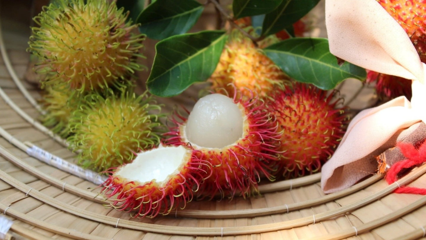 Avec ses petits « cheveux » rouges et verts, le ramboutan est probablement l’un des fruits du Vietnam les plus amusants à regarder. Son nom vietnamien, chôm chôm, vient d’ailleurs de son apparence hérissée. Sous cette coque étrange se cache pourtant une chair blanche, juteuse et très sucrée, qui ressemble un peu à celle du litchi. C’est un fruit très populaire au Vietnam, surtout dans les provinces du sud comme Dong Nai ou Ben Tre. Les vergers de Long Khanh sont particulièrement réputés, et pendant la saison, il est difficile de résister aux grands paniers de ramboutans vendus au bord des routes.