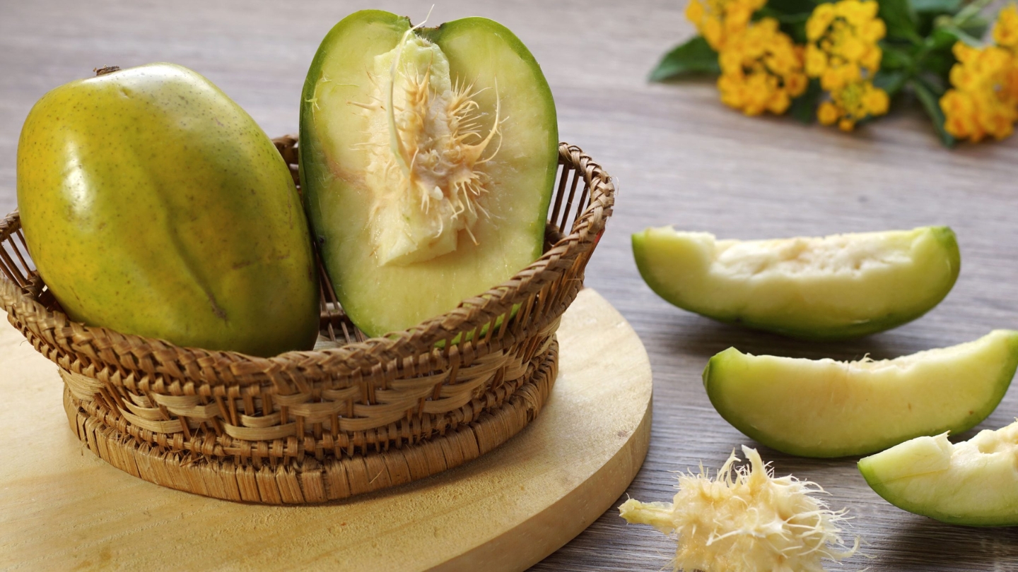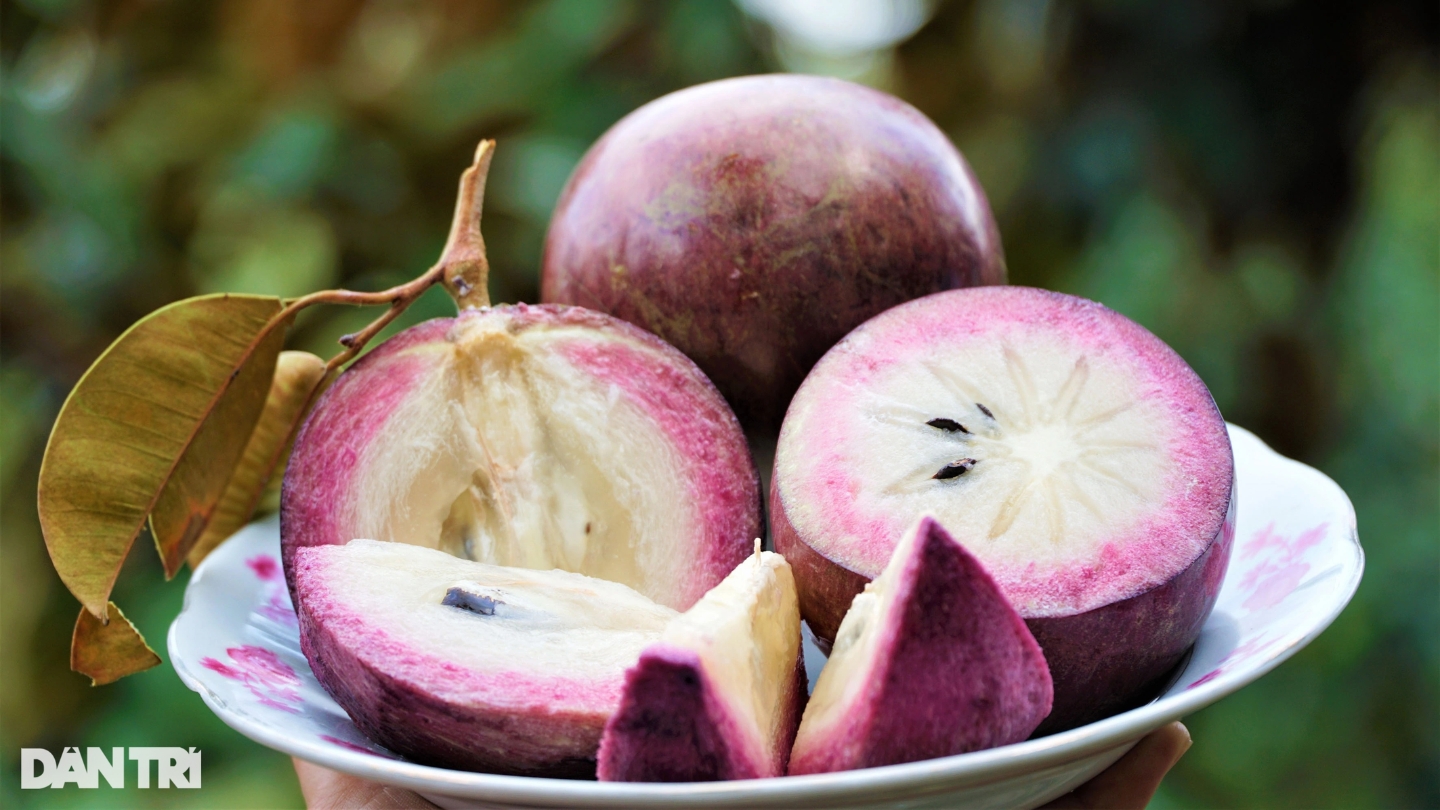 Le vú sữa est l’un des fruits les plus poétiques du Vietnam. Son nom signifie littéralement « sein de lait » ou « fruit au lait », en référence au jus blanc et laiteux que l’on voit apparaître lorsqu’on l’ouvre. Ce fruit vient surtout de Tien Giang et d’autres provinces du sud. À l’extérieur, il est rond, lisse, parfois violet ou vert clair. À l’intérieur, sa chair est tendre, très parfumée et délicatement sucrée. Beaucoup de voyageurs trouvent qu’elle rappelle un mélange entre la poire, la vanille et le lait concentré.