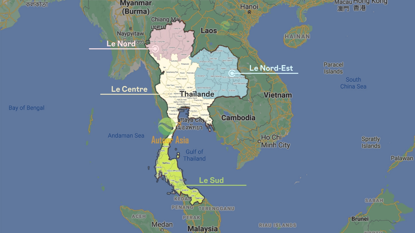 Le Sud occupe une place centrale sur la carte voyage Thaïlande auprès des amateurs de plages tropicales. Cette région s’étend sur une bande étroite bordée par deux espaces maritimes distincts, chacun proposant une ambiance spécifique. Le littoral attire une clientèle variée en quête de détente, de loisirs nautiques, de paysages marins spectaculaires. La carte touristique Thaïlande aide à choisir la zone la plus adaptée selon le style de séjour recherché. Le Sud constitue un pilier incontournable de tout guide voyage de Thaïlande orienté vers le repos balnéaire.