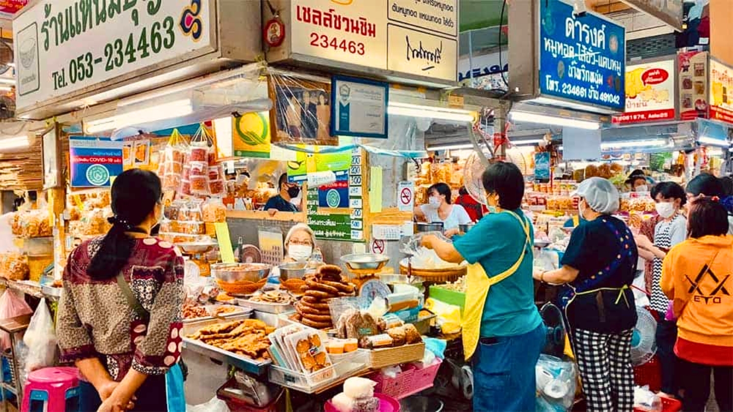 Pour ce dernier jour de notre voyage à Chiang Mai en 3 jours, on choisit de savourer la ville à un rythme plus doux. Après deux journées riches en découvertes, place à la détente et aux petits plaisirs simples. On commence la matinée par une balade au marché local de Warorot. Les étals débordent de fruits exotiques, de fleurs fraîches et d’épices colorées. On goûte des mangues sucrées, on discute avec les vendeurs, on observe la vie locale qui s’éveille lentement.
