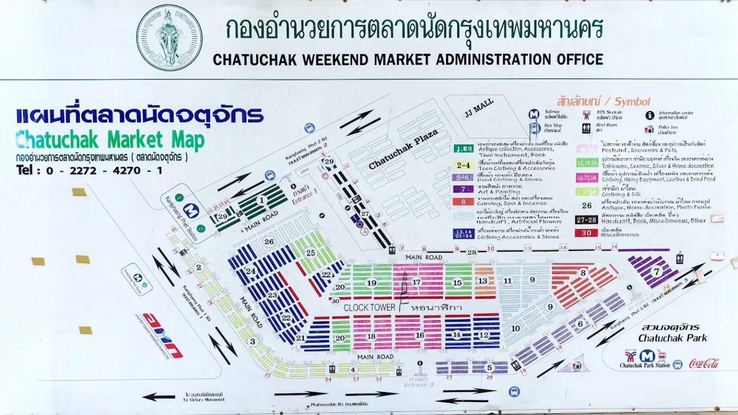 Actuellement, le marché animé de Chatuchak est divisé en 27 zones. Chaque zone est appelée « Soi » et porte un numéro spécifique. Toutefois, si l’on classe le marché par types de produits, on peut distinguer 11 grandes catégories principales :