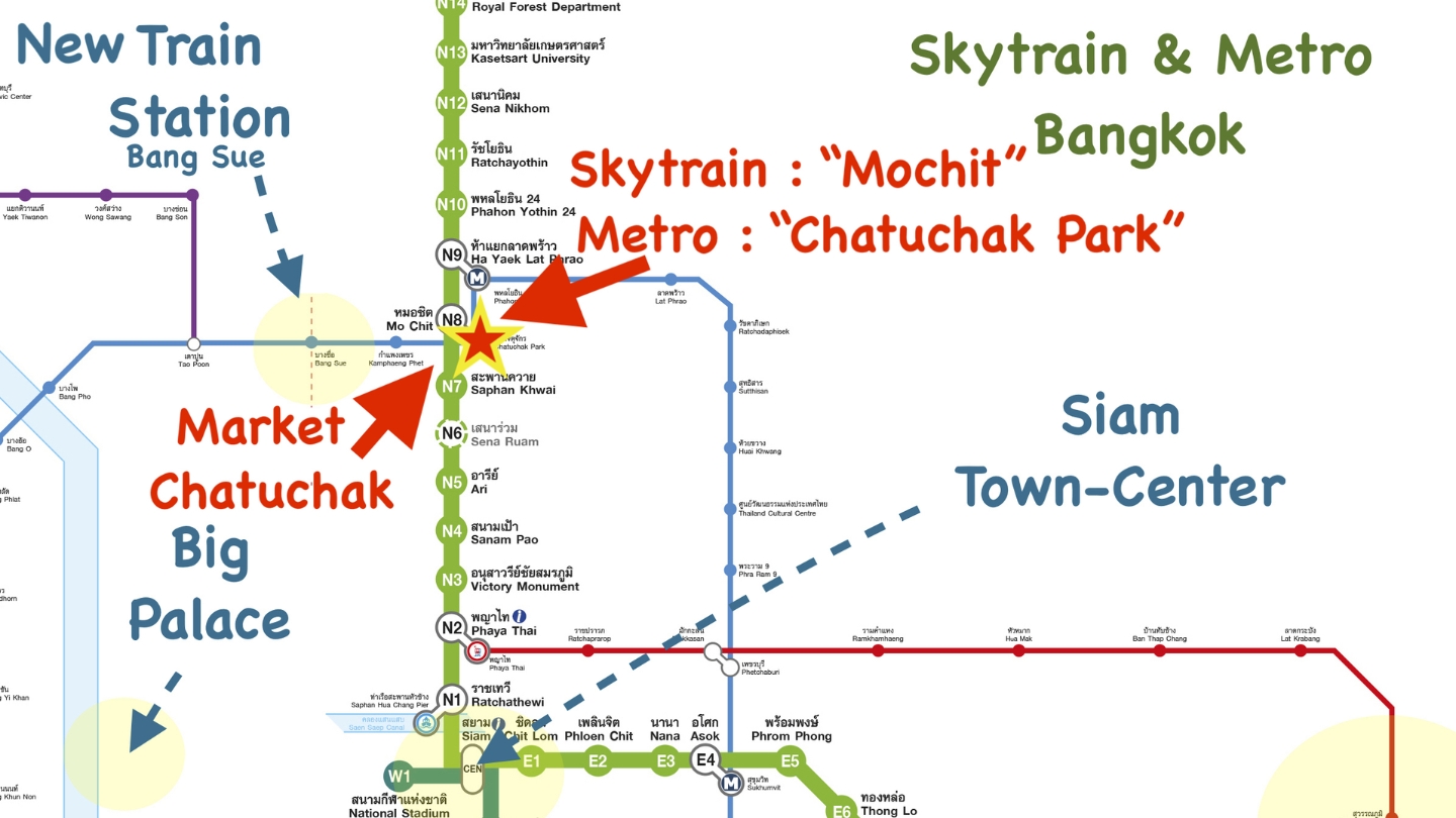 Ligne Sukhumvit jusqu’à la station Mo Chit (N8).