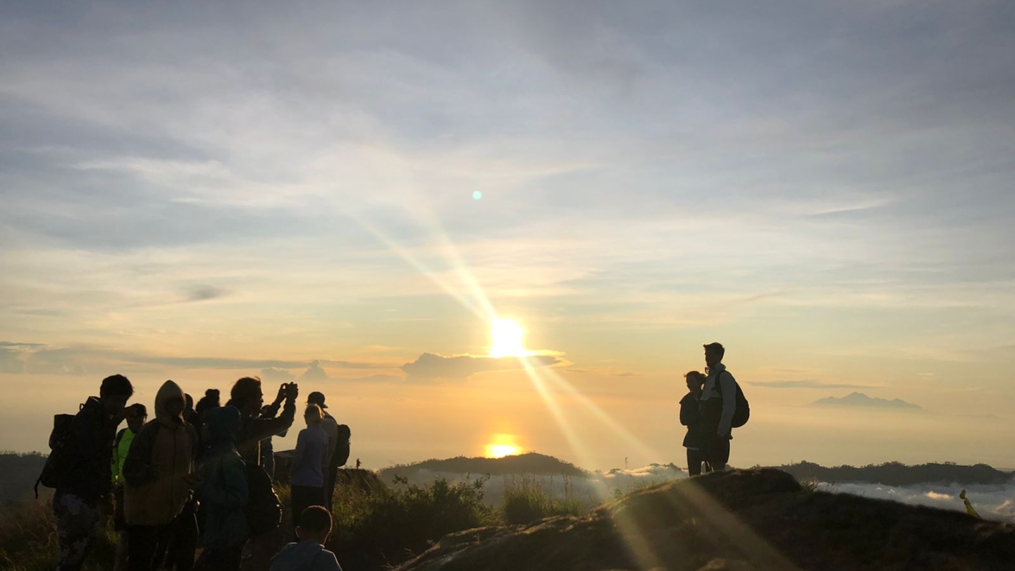 Vers 06h00, le soleil commence à apparaître derrière le Mont Abang puis le Mont Agung, le plus haut sommet de l'île. En contrebas, le Lac Batur disparaît sous une mer de nuages qui s'étire à perte de vue. C'est l'un des panoramas les plus photographiés d'Indonésie, et pour cause : la lumière de l'aube sur ce paysage volcanique est d'une qualité rare. Ce trekking Mont Batur 1 jour vaut largement le réveil à 3h du matin pour ce seul spectacle.