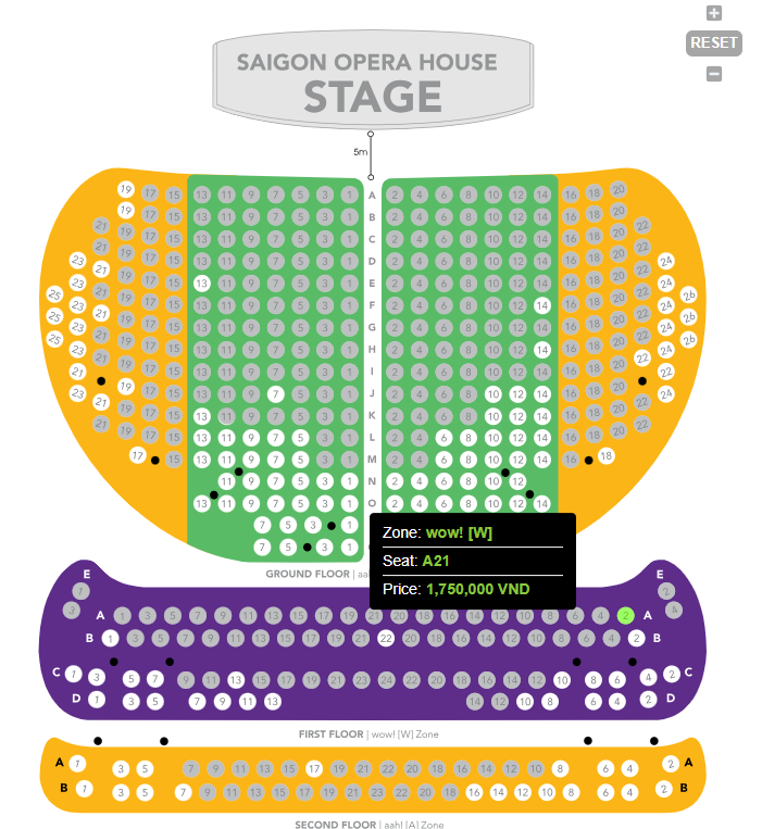Le spectacle propose plusieurs catégories de billets adaptées à tous les budgets. Les places WOW! offrent une immersion totale grâce à leur proximité avec la scène, tandis que les catégories OOH! assurent une excellente visibilité depuis le parterre. Les billets AAH!, situés au balcon, permettent une vue d’ensemble panoramique. Les prix se situent généralement entre 800 000 VND et 1 750 000 VND par personne, selon la catégorie choisie.