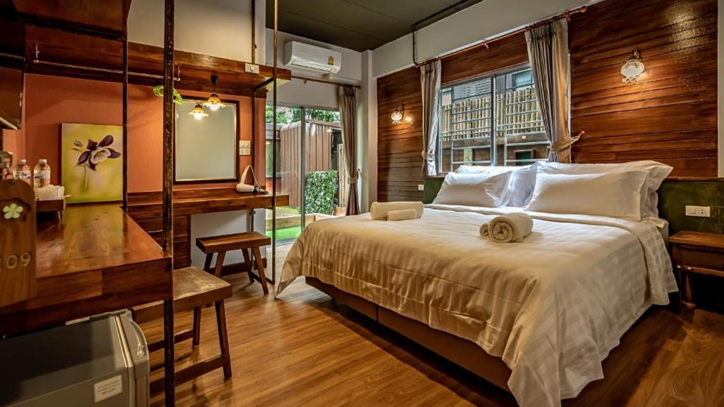 Dans une petite rue du quartier de Si Phum, OYO 899 Villa De Hun surprend par sa simplicité élégante. Derrière une façade en bois typique, cet hôtel 3 étoiles à Chiang Mai cache un lieu apaisant où tout semble aller doucement. Le jardin, les plantes, la lumière du matin : l’endroit dégage une atmosphère presque familiale. Les chambres sont propres, décorées avec soin, parfaites pour un séjour à Chiang Mai tranquille et sans stress.