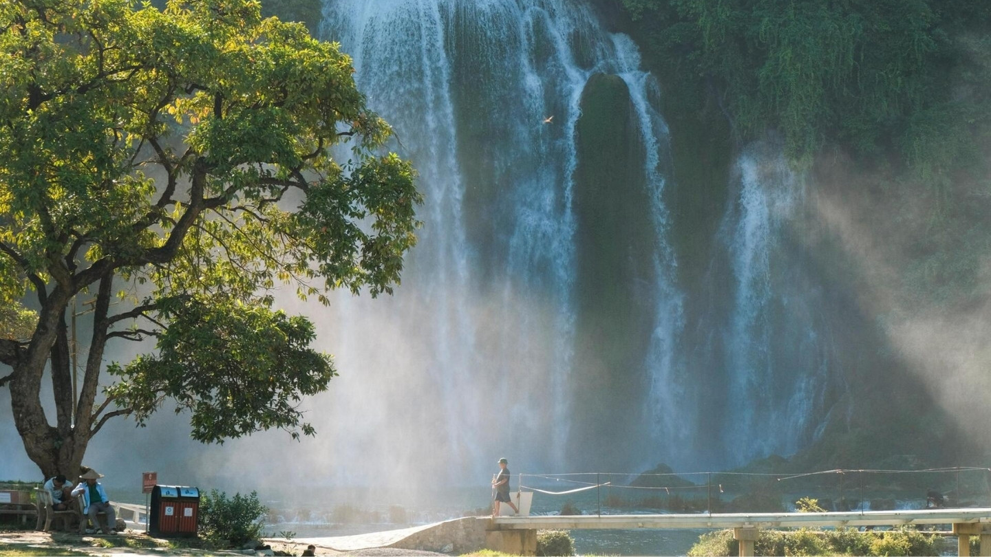 C'est le moment de l'année où la frontière naturelle entre le Vietnam et la Chine est la plus belle. Contrairement à l'été où les eaux peuvent devenir boueuses et tumultueuses à cause des crues, en septembre et octobre, l'eau des chutes retrouve une clarté absolue, d'un bleu turquoise cristallin. Le débit reste suffisamment puissant pour créer une brume légère qui scintille sous le soleil d'automne, offrant un contraste saisissant avec la roche sombre et la verdure luxuriante environnante.
