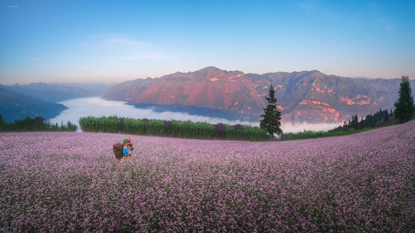 Malgré ce froid mordant, la nature ne s'endort pas. Dès le mois de novembre, les flancs de montagnes de Thach An ou de Ha Lang se parent de teintes délicates allant du blanc au rose pourpre. La floraison des sarrasins, emblématique des hauts plateaux du Nord, apporte une touche de douceur et de romantisme aux paysages karstiques souvent austères de l'hiver.