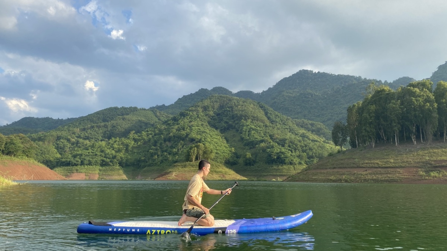 Que faire à Mai Chau en 2 jours ? Après le déjeuner, vers 14 heures, reprenez la route vers Hanoï. En chemin, faites une halte au lac de Hoa Binh, situé à une quinzaine de kilomètres au nord de Mai Chau. C’est le plus grand lac artificiel du Vietnam et l’une des nouvelles destinations d’écotourisme les plus prometteuses de la région. Le paysage est spectaculaire : des montagnes karstiques se reflètent dans une eau émeraude, créant une atmosphère paisible et presque irréelle. Si vous avez un peu de temps, vous pouvez faire une courte croisière en bateau sur le lac, organiser une sortie en kayak, en canoë ou même en paddle. Juste à côté du lac se trouve également une jolie cascade, parfaite pour une petite pause nature avant de reprendre la route. Sinon, installez-vous simplement à la terrasse d’un café avec vue sur l’eau.