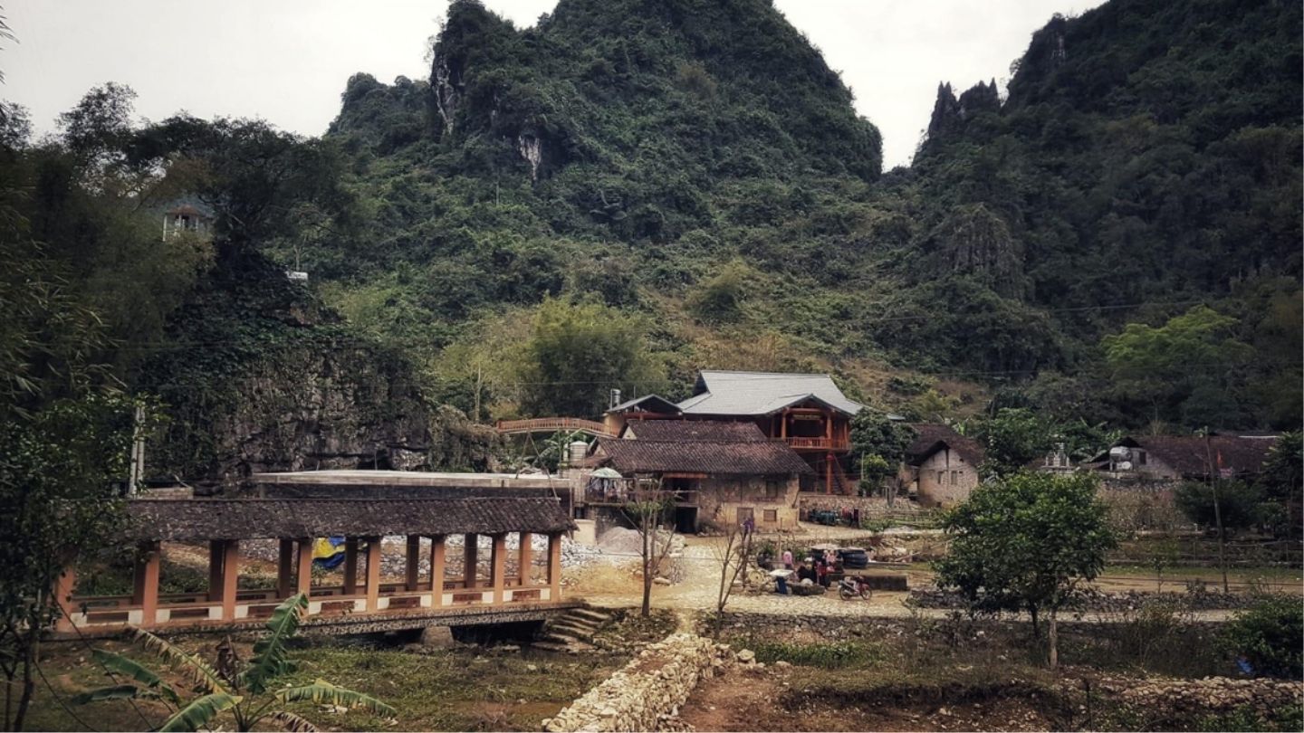 Votre 1 semaine à Cao Bang commence depuis Hanoi après six ou sept heures de bus. L’arrivée est simple : pas de cohue, seulement une ville tranquille où les marchés ferment tôt et où les gens discutent au bord de la rivière Bang Giang. Installez-vous dans une petite maison Tay légèrement excentrée. La ville de Cao Bang n’a rien d’exubérant, et c’est exactement ce qui plaît : vous pouvez vous installer dans une homestay Tay ou Nung (5 - 25 €/ nuit) légèrement en retrait du centre.