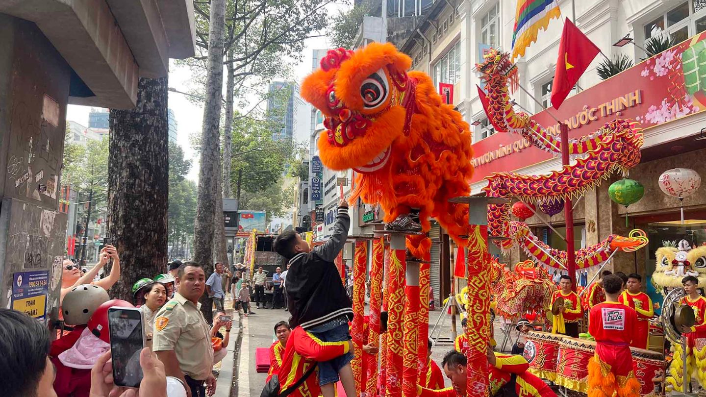 Les danses du lion et du dragon sont incontournables au Vietnam pendant le Têt. Elles symbolisent la chance et la prospérité et animent les rues et les quartiers. Assister à ces spectacles fait clairement partie des 10 choses à faire au Vietnam pendant le Têt, car ils reflètent l’énergie festive et les croyances populaires liées au Nouvel An lunaire.