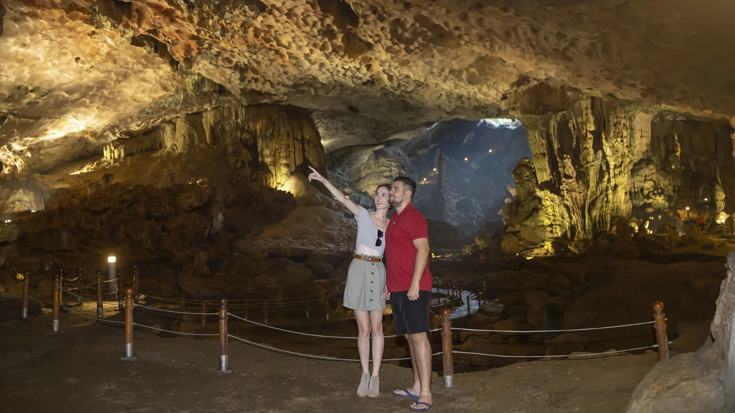 Ce site naturel monumental se compose de deux salles immenses aux reliefs impressionnants. Les stalactites géantes créent des formes mystérieuses sous les projecteurs colorés. Il s'agit d'un point technique essentiel que savoir pour le voyage à Halong pour comprendre la formation géologique locale. Le chemin vers la sortie offre un panorama imprenable sur les eaux turquoise.