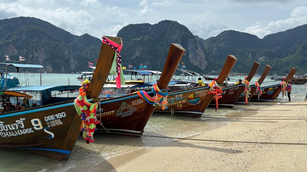 Se déplacer à Koh Phi Phi est une expérience unique, car l’île est entièrement dépourvue de voitures et de motos. Les distances au cœur de Koh Phi Phi Don, notamment entre Tonsai Bay et Loh Dalum Beach, peuvent facilement être parcourues à pied. Les ruelles étroites et animées invitent à la découverte à un rythme tranquille, parfait pour s’imprégner de l’ambiance locale.