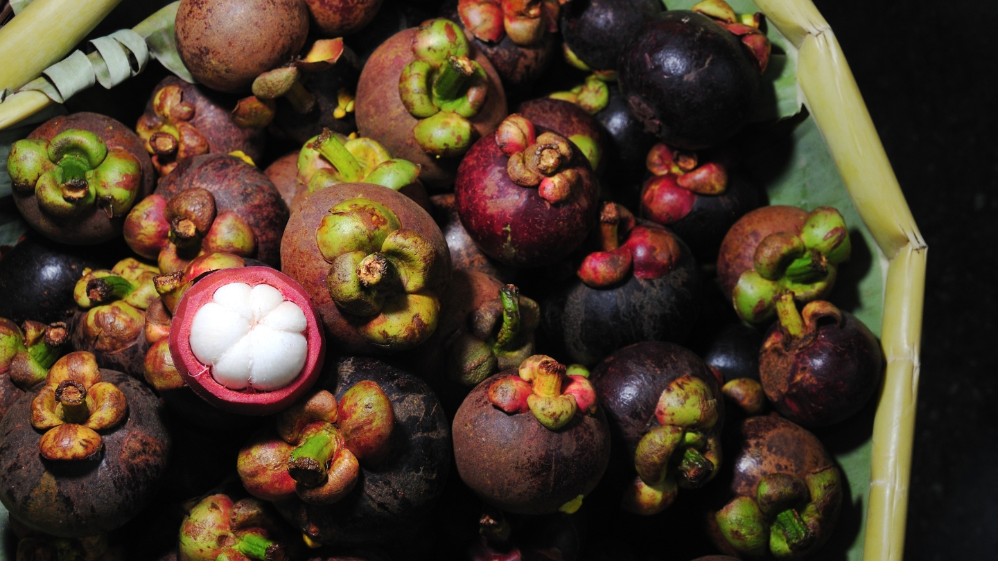 Le mangoustan est considéré par beaucoup comme le roi des fruits tropicaux du Laos, et sa réputation n'est pas usurpée. Il pousse principalement dans les provinces du sud, autour de Pakse et Champasak, dans des conditions de chaleur et d'humidité élevées. La saison principale va de mai à juillet.