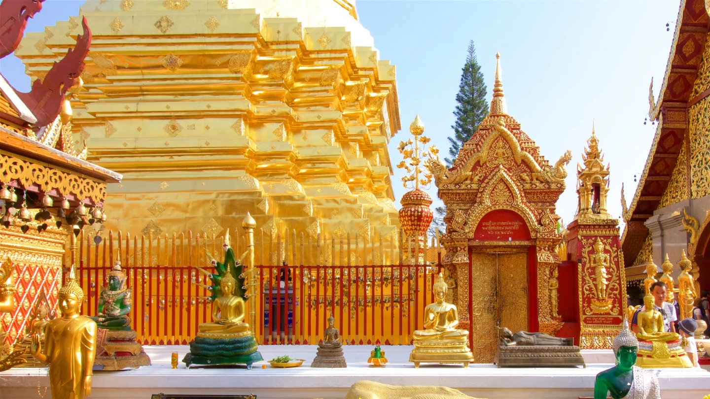 Le guide partage des anecdotes, repères historiques et clés de compréhension culturelle, rendant chaque étape vivante et accessible. Après une pause déjeuner libre ou incluse selon la formule, l’excursion se poursuit vers la montagne de Doi Suthep. Grâce à une excursion Doi Suthep avec réservation, le transport est organisé à l’avance, évitant toute logistique complexe.