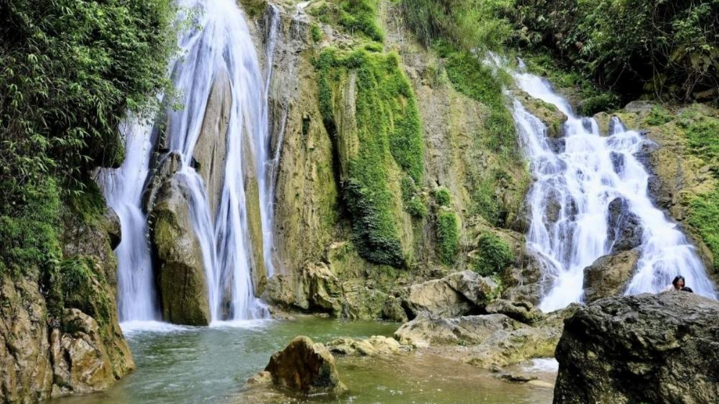 Votre deuxième journée dans la vallée commence par une immersion totale au cœur des éléments. Après un petit-déjeuner traditionnel sur pilotis, prenez la route panoramique en direction de la cascade de Go Lao. Véritable joyau caché à une quinzaine de kilomètres du bourg, cette chute d'eau est une étape incontournable si vous vous demandez encore que faire à Mai Chau pour sortir des sentiers battus. Se frayant un chemin spectaculaire à travers une végétation dense, cette "dame blanche" offre une pause ressourçante au milieu de votre itinéraire Mai Chau 3 jours. C'est l'endroit idéal pour une baignade improvisée dans les vasques naturelles ou pour une séance photo mémorable. Cette escapade sauvage souligne parfaitement la diversité de ce qu'il est possible de faire à Mai Chau en 3 jours, alliant fraîcheur des eaux et sérénité des montagnes de Hoa Binh.